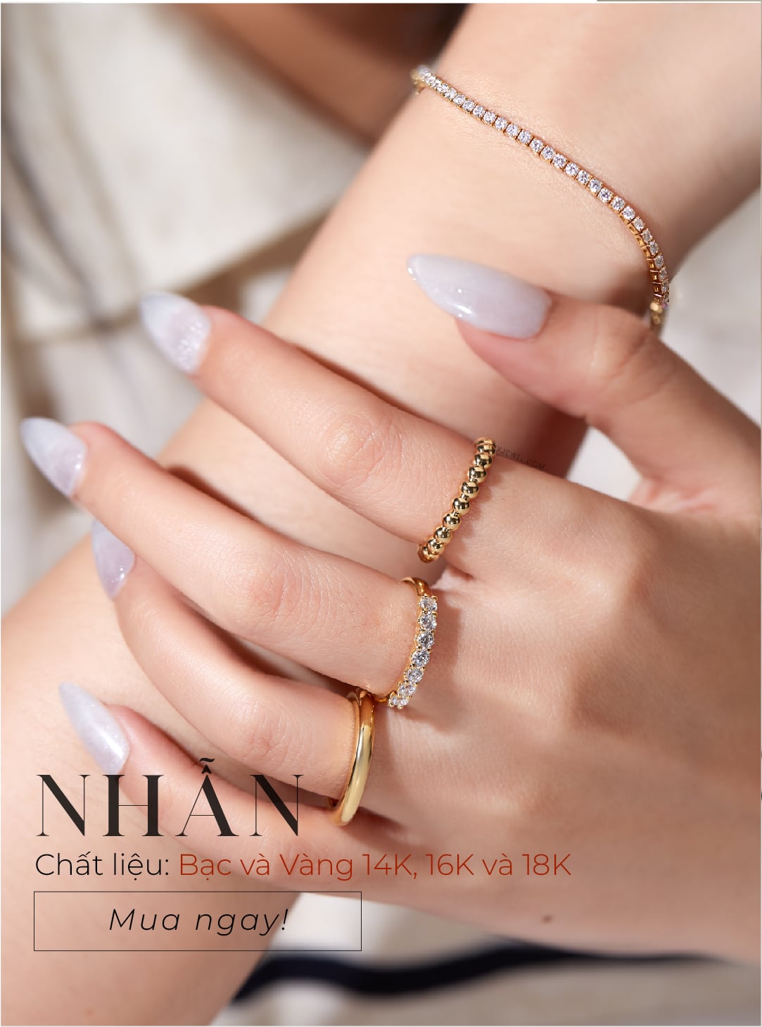 Một món đồ trang sức tinh xảo, ít cần bảo dưỡng và có thể sử dụng trọn đời. Vàng nguyên chất với tỉ lệ 58.5% được pha trộn với các hợp kim khác để bền hơn và có màu sắc đẹp. Đây là sự lựa chọn phù hợp bởi sự cân bằng giữa chi phí và chất lượng.