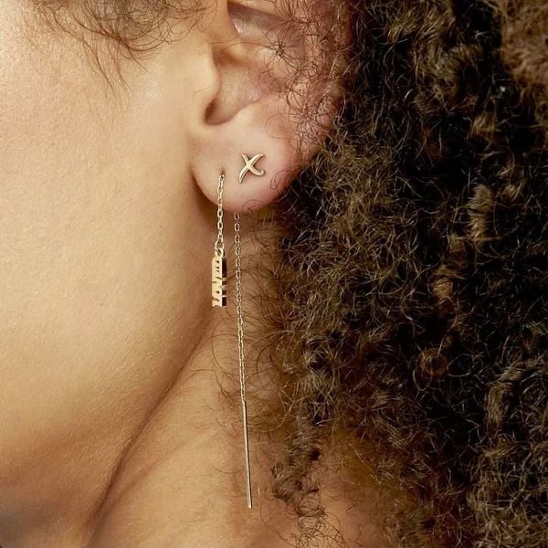 Bông tai kiểu chuỗi (chain earrings) là lựa chọn hoàn hảo cho những ai sở hữu khuôn mặt tròn nhờ thiết kế dây mảnh dài, đu đưa nhẹ nhàng theo chuyển động. Kiểu dáng này giúp tạo hiệu ứng khuôn mặt thon gọn hơn, đồng thời tăng thêm nét cuốn hút khi nhìn nghiêng. Với phong cách tối giản, hiện đại và tinh tế, bông tai chuỗi không chỉ phù hợp để đeo hằng ngày mà còn lý tưởng cho những dịp cần sự nhẹ nhàng nhưng vẫn nổi bật.